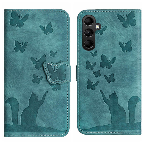 For Samsung Galaxy A56 5G Butterfly Cat Embossing Flip Leather Phone Case(Wathet)