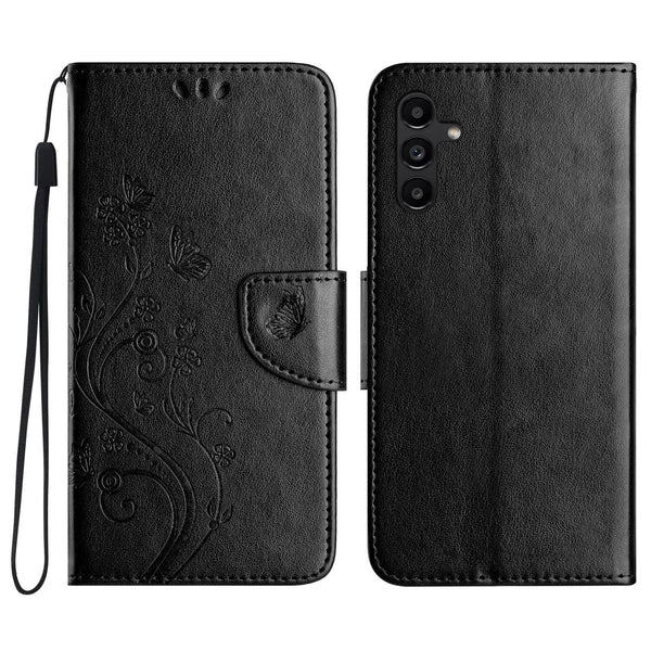 For Samsung Galaxy A56 5G Butterfly Flower Pattern Flip Leather Phone Case(Black)