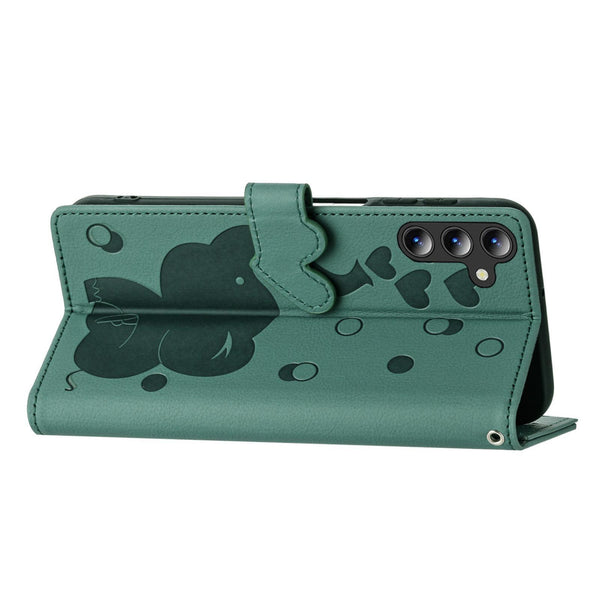 For Samsung Galaxy A56 5G Cartoon Elephant Embossed Leather Phone Case(Green)