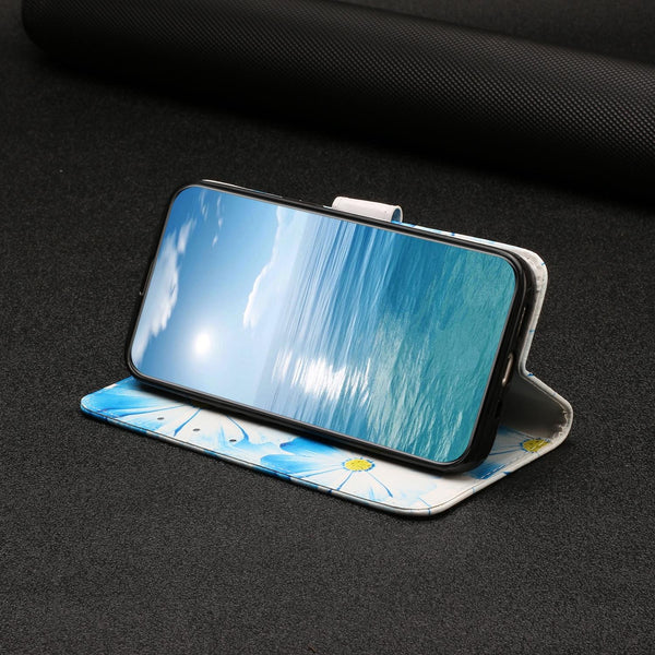 For Samsung Galaxy A56 5G Colored Drawing Marble Pattern Leather Phone Case(Blue Flower)