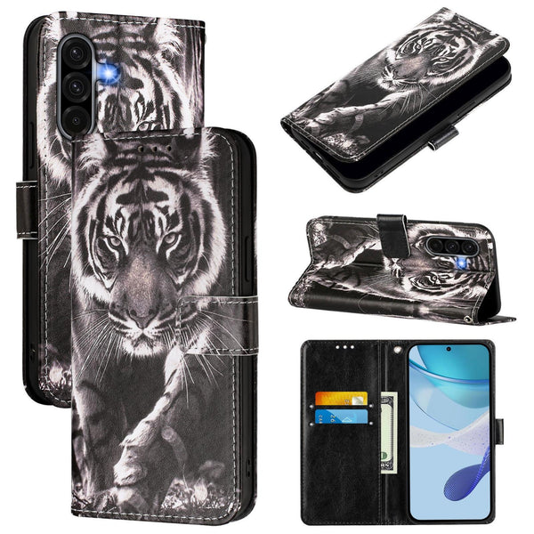 For Samsung Galaxy A56 5G Colored Drawing Pattern Plain Weave Leather Phone Case(Black And White Tiger)