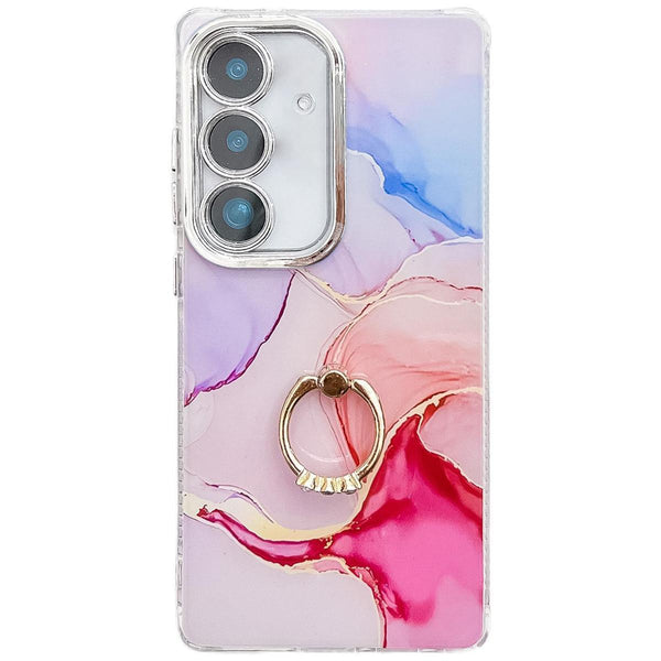 For Samsung Galaxy A56 5G Electroplated Marble Texture Ring Holder Phone Case(Red S7)