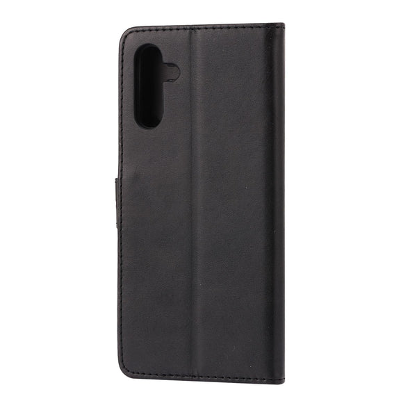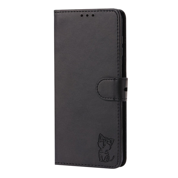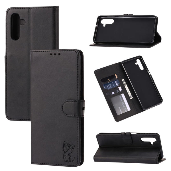 For Samsung Galaxy A56 5G Embossed Happy Cat Pattern Flip Leather Phone Case(Black)