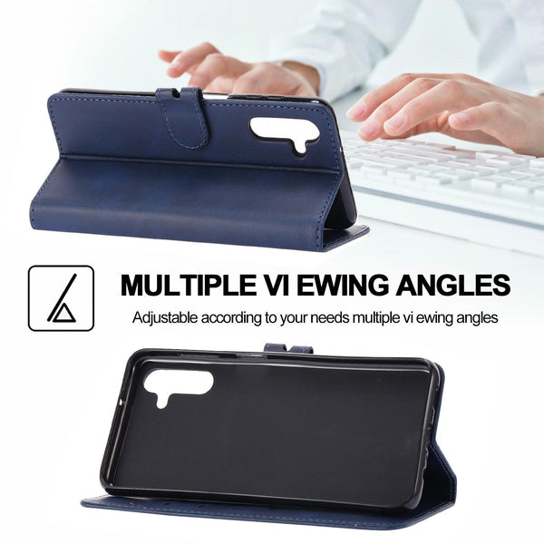 For Samsung Galaxy A56 5G Embossed Happy Cat Pattern Flip Leather Phone Case(Blue)
