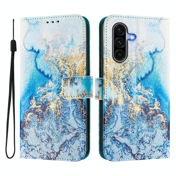 For Samsung Galaxy A56 5G ENKAY Painted Leather Phone Case with Card Slots Holder(Ocean Marble Pattern)