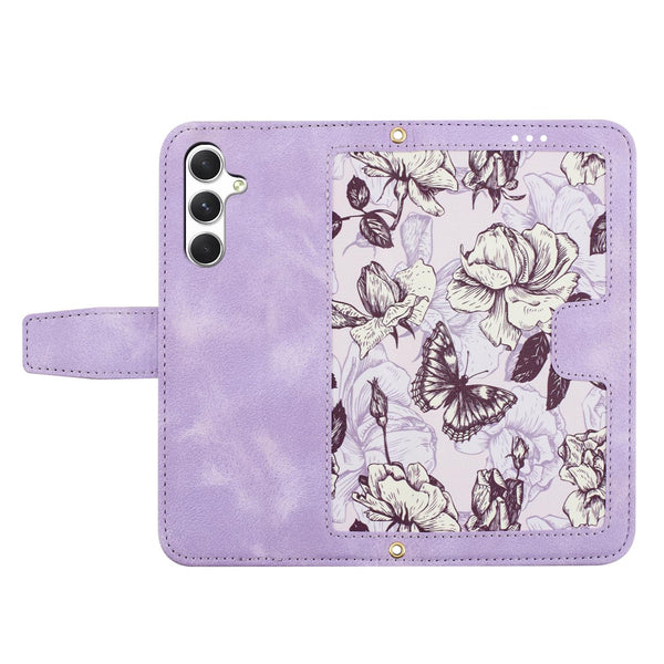 For Samsung Galaxy A56 5G Floral Pattern Leather Phone Case with Lanyard(Light Purple)