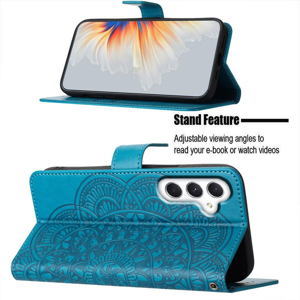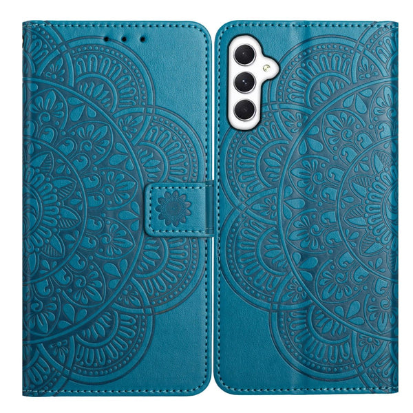 For Samsung Galaxy A56 5G Flower Embossed Leather Phone Case(Blue)