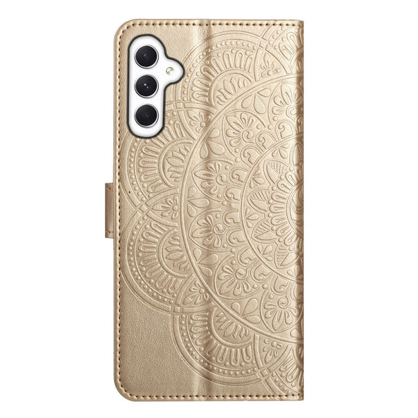 For Samsung Galaxy A56 5G Flower Embossed Leather Phone Case(Gold)
