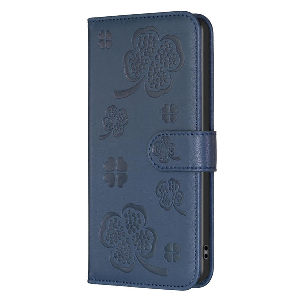 For Samsung Galaxy A56 5G Four-leaf Embossed Leather Phone Case(Blue)