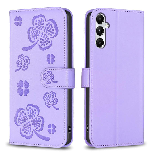 For Samsung Galaxy A56 5G Four-leaf Embossed Leather Phone Case(Purple)