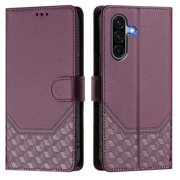 For Samsung Galaxy A56 5G Honeycomb Embossing RFID Leather Phone Case(Violet)