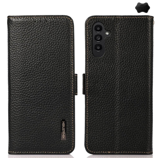 For Samsung Galaxy A56 5G KHAZNEH Side-Magnetic Litchi Genuine Leather RFID Phone Case(Black)