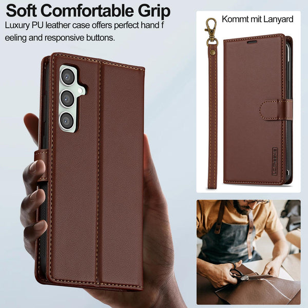 For Samsung Galaxy A56 5G LC.IMEEKE L2 Series Detachable Magsafe PU Phone Case with Lanyard(Brown)