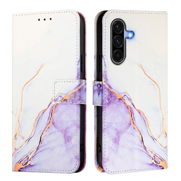 For Samsung Galaxy A56 5G PT003 Marble Pattern Flip Leather Phone Case(White Purple)