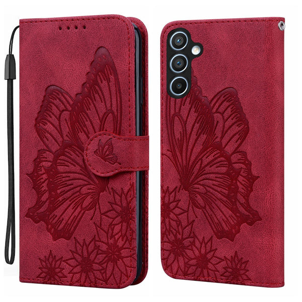 For Samsung Galaxy A56 5G Retro Skin Feel Butterflies Embossing Horizontal Flip Leather Phone Case(Red)