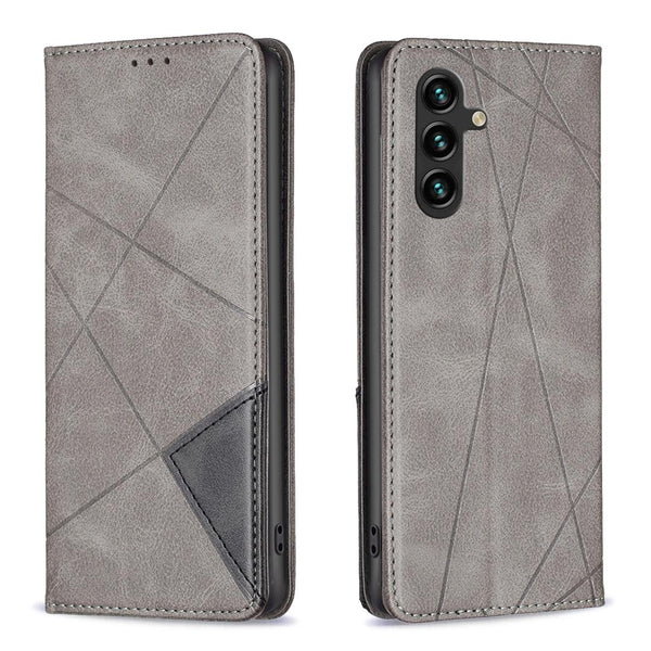 For Samsung Galaxy A56 5G Rhombus Texture Magnetic Leather Phone Case(Grey)