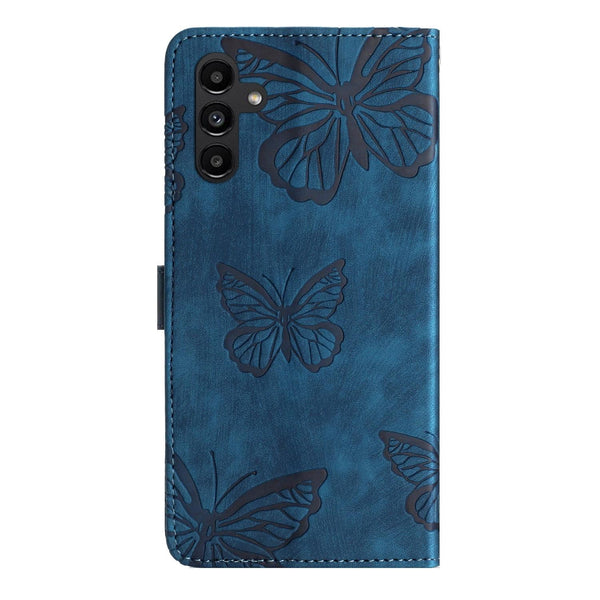 For Samsung Galaxy A56 5G Skin-feel Embossed Butterfly Leather Phone Case(Blue)