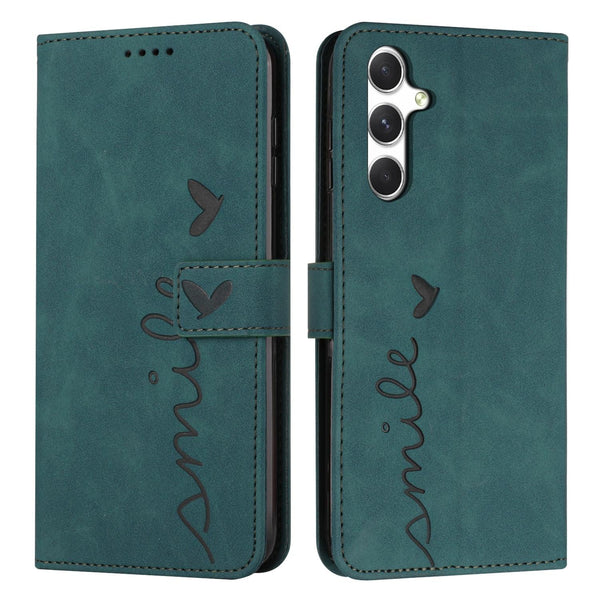 For Samsung Galaxy A56 5G Skin Feel Heart Embossed Leather Phone Case with Long Lanyard(Green)