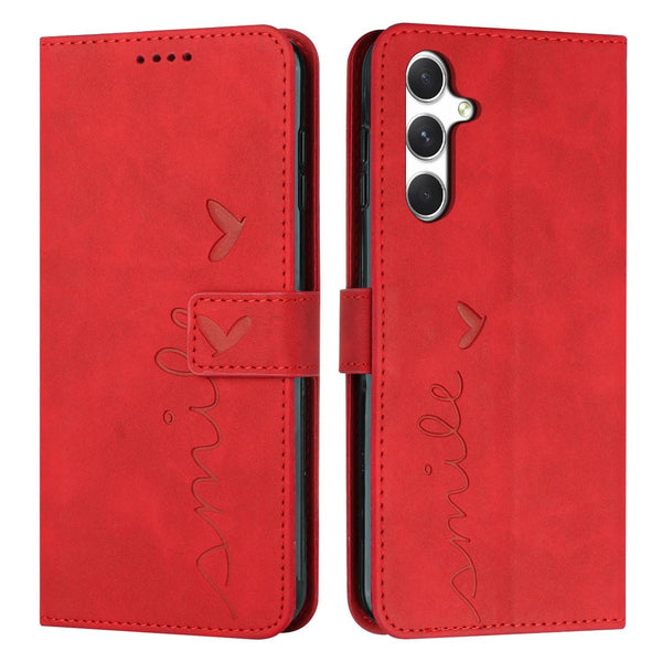 For Samsung Galaxy A56 5G Skin Feel Heart Embossed Leather Phone Case with Long Lanyard(Red)