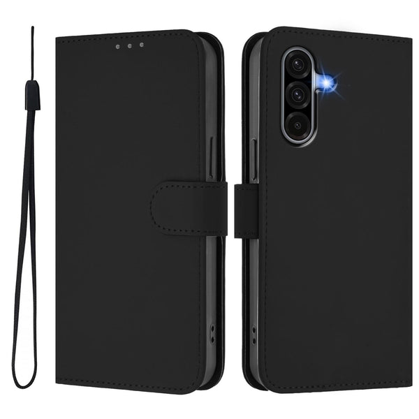 For Samsung Galaxy A56 5G Skin Feel Solid Color Leather Phone Case with Lanyard(Black)