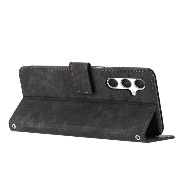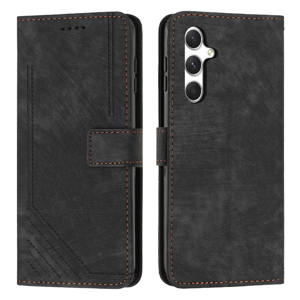 For Samsung Galaxy A56 5G Skin Feel Stripe Pattern Leather Phone Case with Long Lanyard(Black)