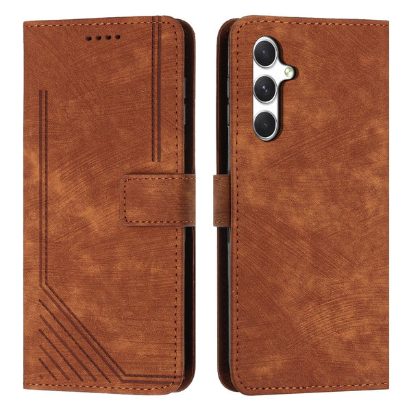 For Samsung Galaxy A56 5G Skin Feel Stripe Pattern Leather Phone Case with Long Lanyard(Brown)