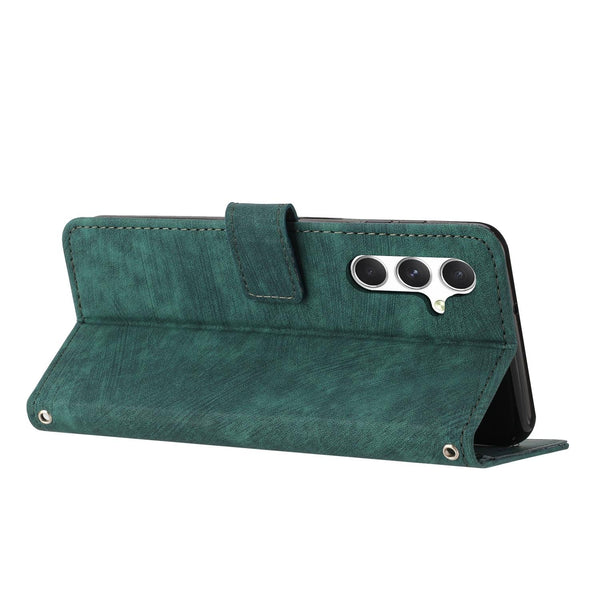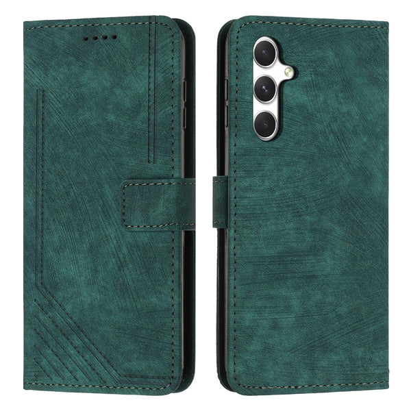 For Samsung Galaxy A56 5G Skin Feel Stripe Pattern Leather Phone Case with Long Lanyard(Green)