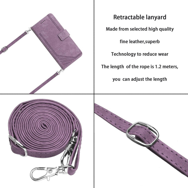 For Samsung Galaxy A56 5G Skin Feel Stripe Pattern Leather Phone Case with Long Lanyard(Purple)