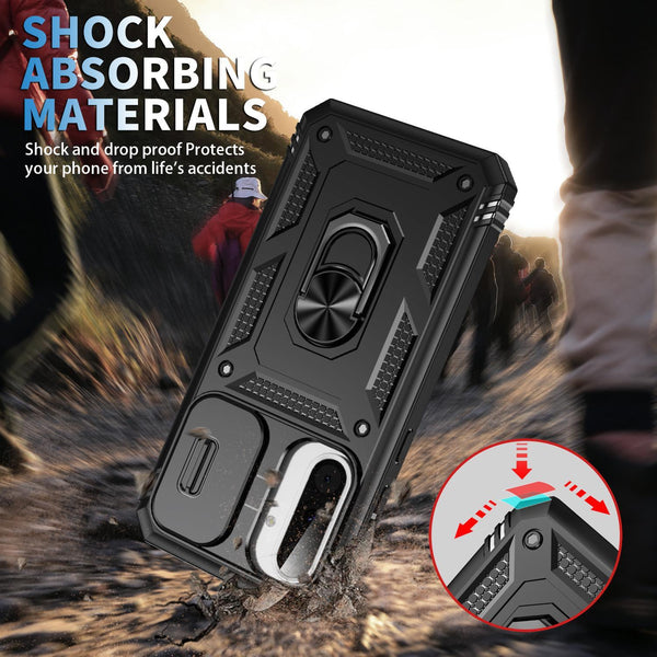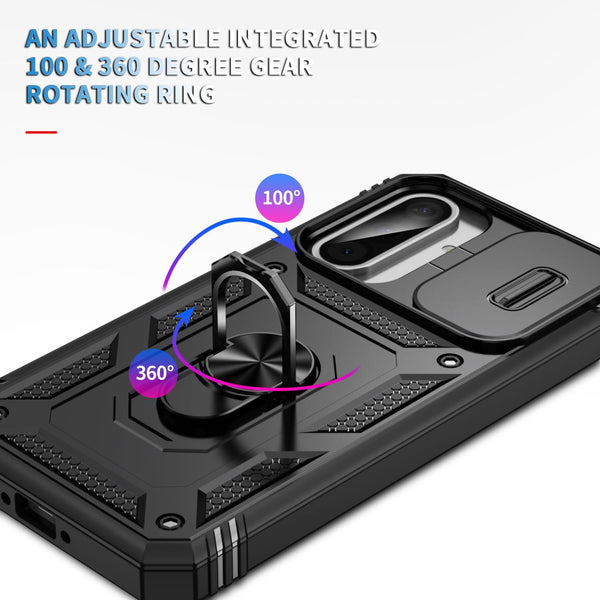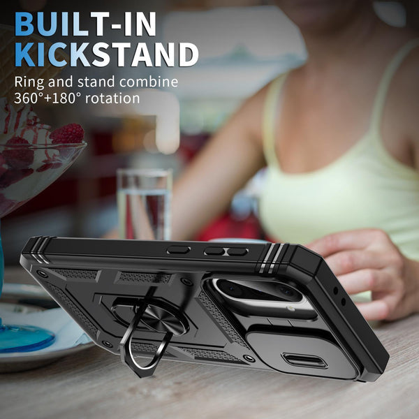 For Samsung Galaxy A56 5G Sliding Camshield TPU + PC Phone Case with Holder(Black)