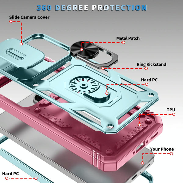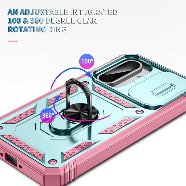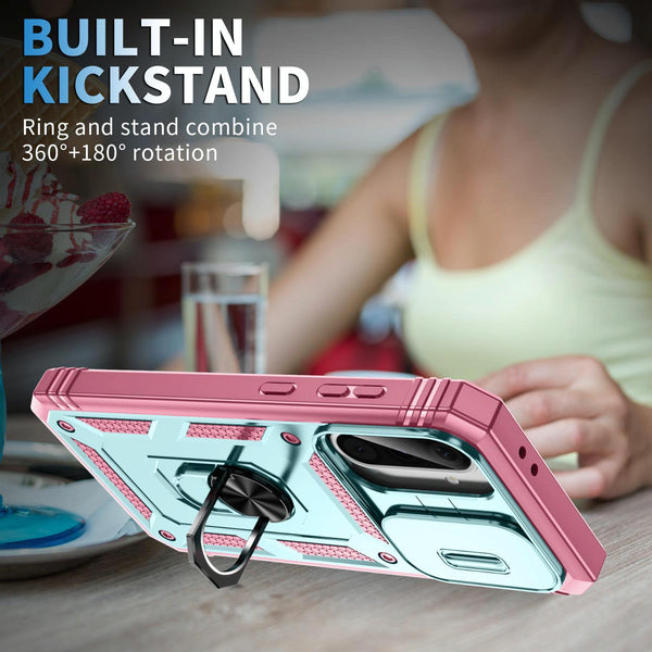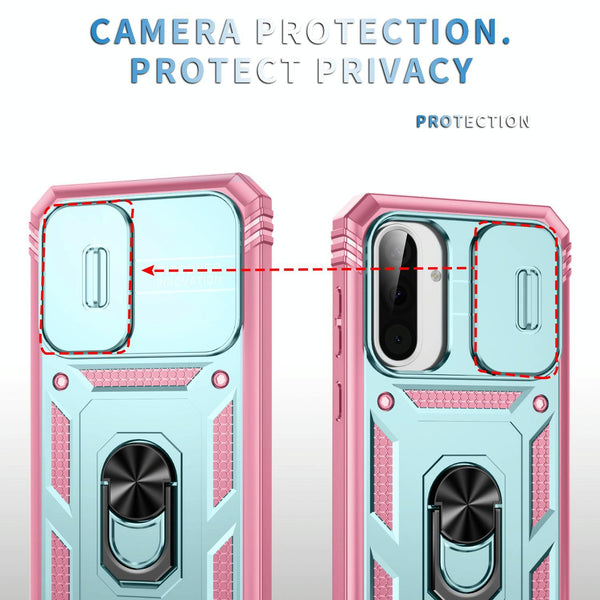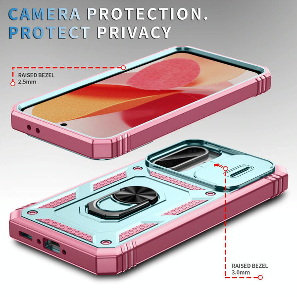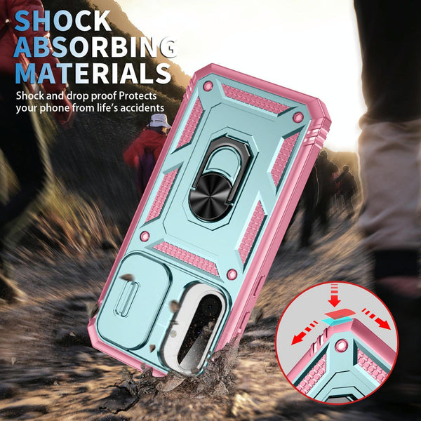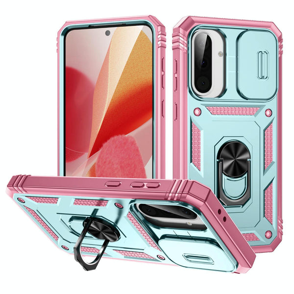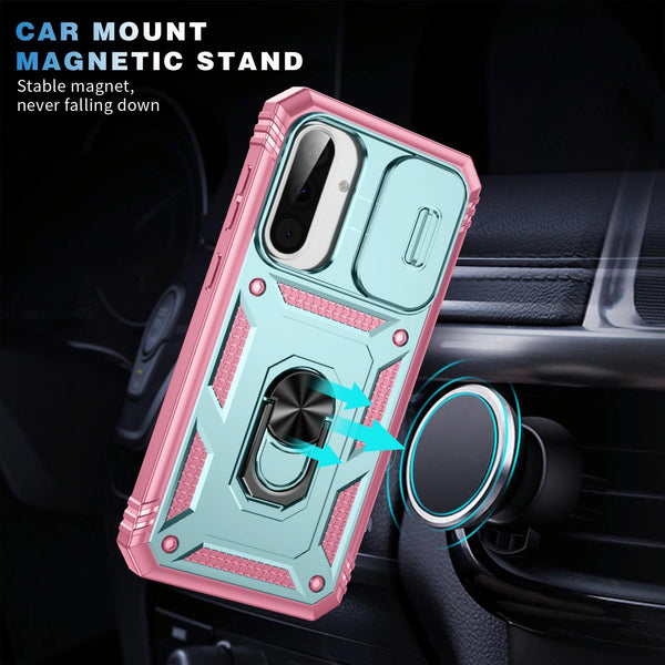 For Samsung Galaxy A56 5G Sliding Camshield TPU + PC Phone Case with Holder(Green+Pink)