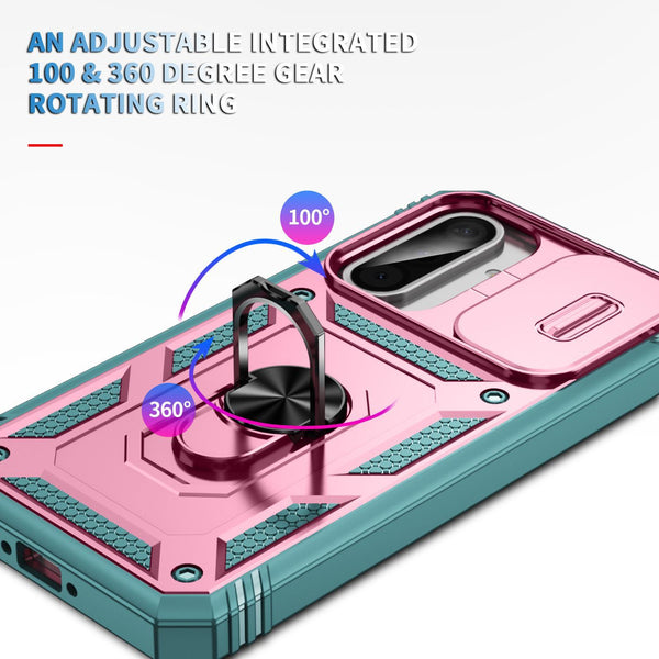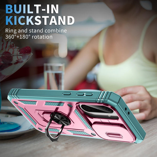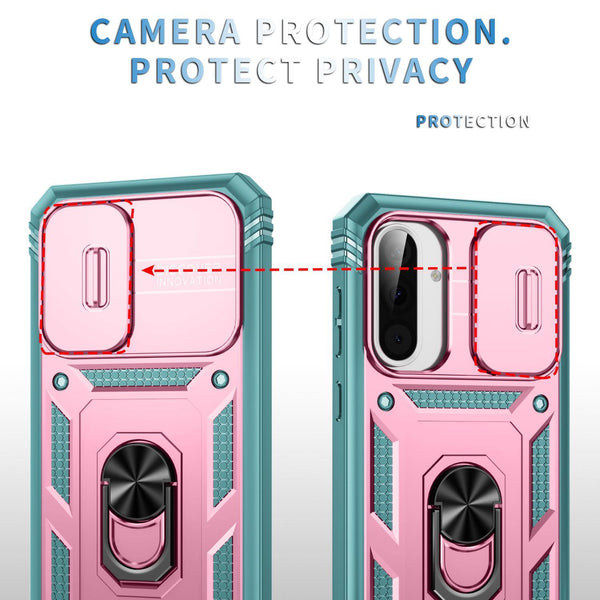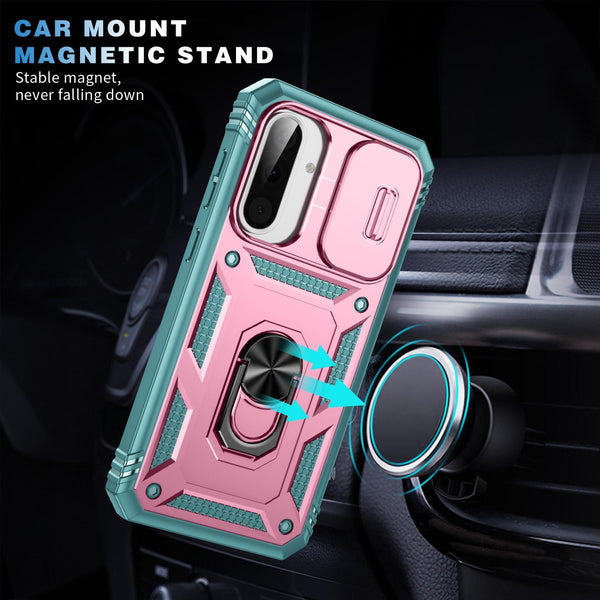 For Samsung Galaxy A56 5G Sliding Camshield TPU + PC Phone Case with Holder(Pink+Green)