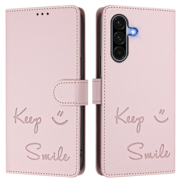 For Samsung Galaxy A56 5G Smile Embossing RFID Leather Phone Case(Pink)