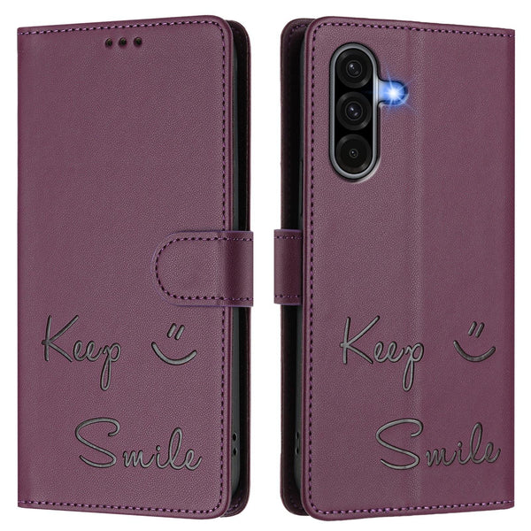 For Samsung Galaxy A56 5G Smile Embossing RFID Leather Phone Case(Violet)