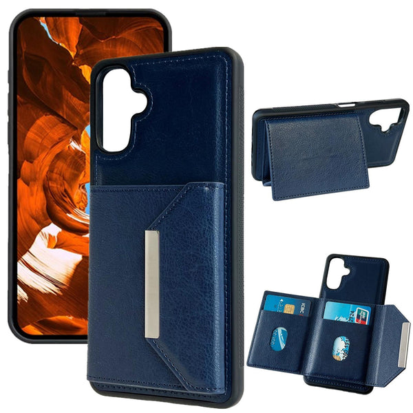 For Samsung Galaxy A56 5G Solid Color Metal Buckle Card Slots Bag Phone Case(Blue)