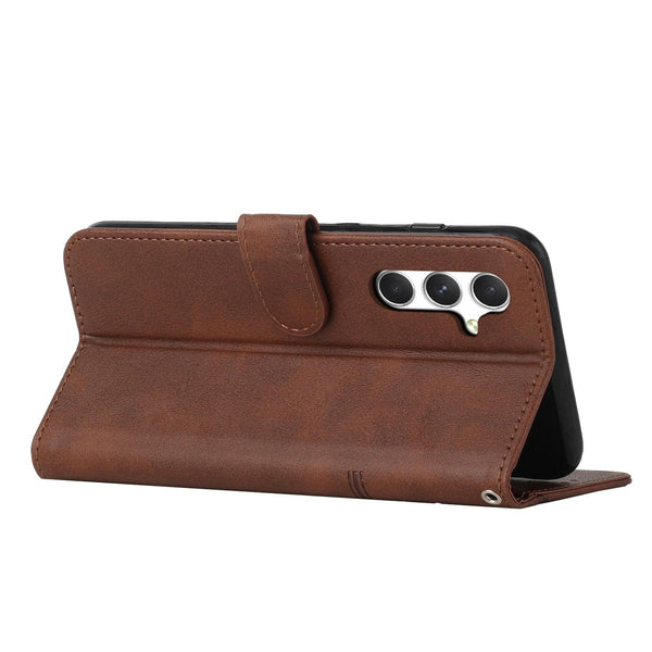 For Samsung Galaxy A56 5G Stitching Calf Texture Buckle Leather Phone Case(Brown)
