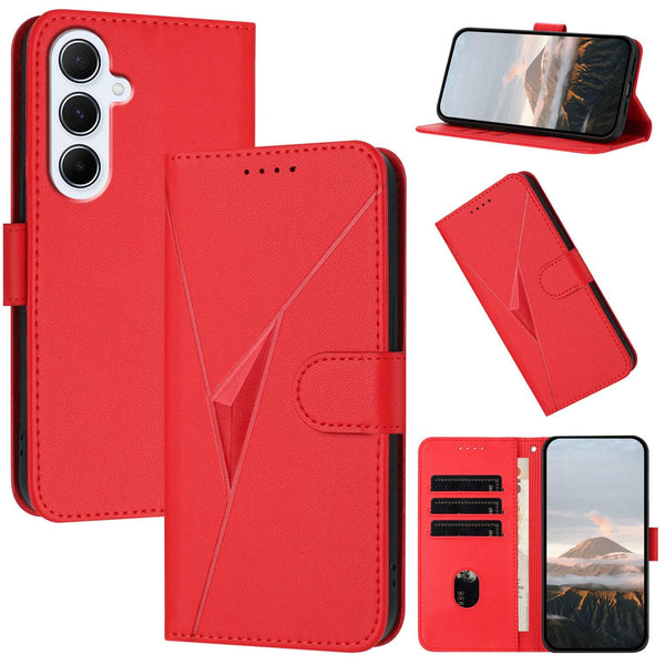 For Samsung Galaxy A56 5G Triangle Pattern Buckle Clasp Leather Phone Case(Red)
