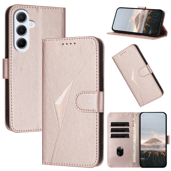 For Samsung Galaxy A56 5G Triangle Pattern Buckle Clasp Leather Phone Case(Rose Gold)