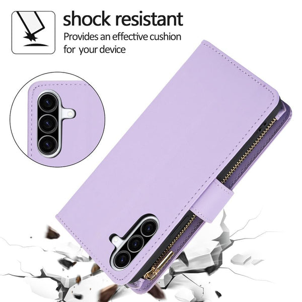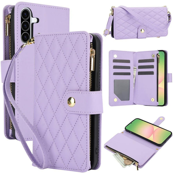 For Samsung Galaxy A56 5G YM016 Rhombic Zipper Card Wallet Leather Phone Case with Lanyard(Light Purple)