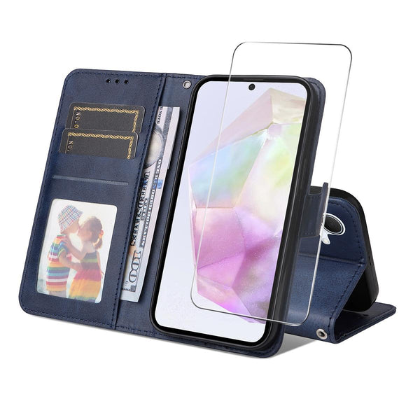 For Samsung Galaxy A56 ENKAY Card Wallet Calf Texture Leather Phone Case with Screen Film(Blue)