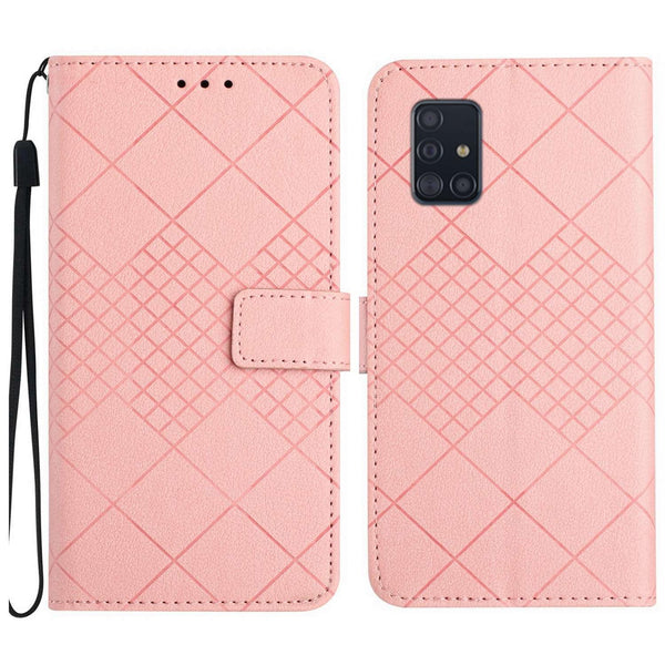 For Samsung Galaxy A71 5G Rhombic Grid Texture Leather Phone Case(Pink)