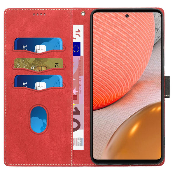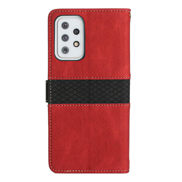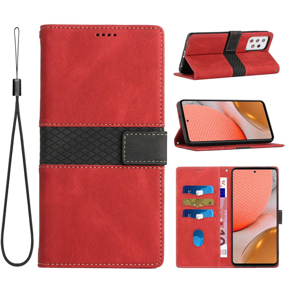 For Samsung Galaxy A72 5G / 4G Grid Stitching Leather Phone Case with Lanyard(Red)
