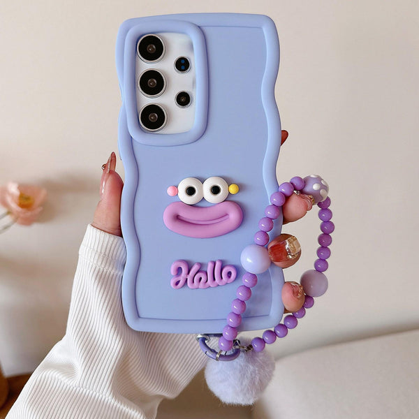For Samsung Galaxy A73 5G Cartoon Sausage Mouth TPU Phone Case with Bead Chain(Purple)