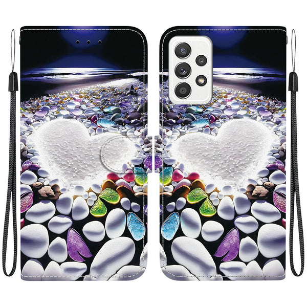 For Samsung Galaxy A73 5G Crystal Texture Colored Drawing Leather Phone Case(Heart Shaped)