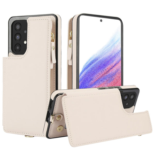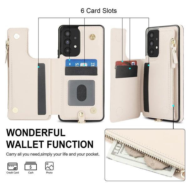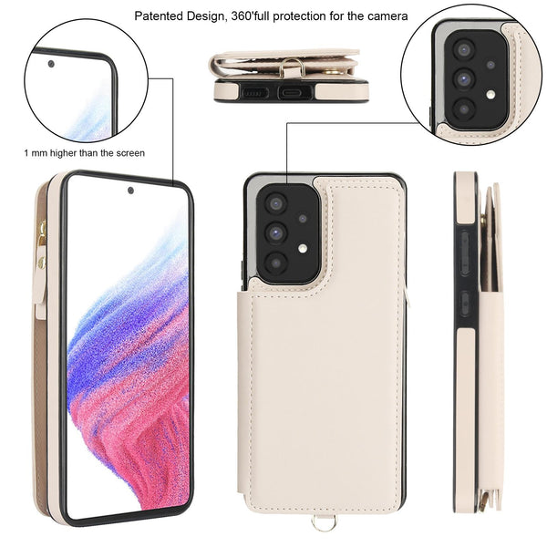 For Samsung Galaxy A73 5G Double Flap Zipper RFID Leather Phone Case with Short Lanyard(White)
