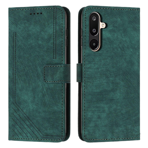 For Samsung Galaxy F16 5G / M16 5G Skin Feel Stripe Pattern Leather Phone Case with Long Lanyard(Green)