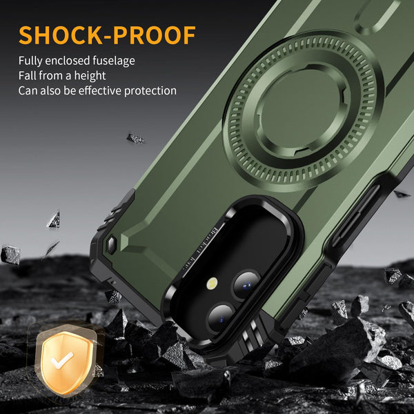 For Samsung Galaxy M13 5G Lens Holder MagSafe Phone Case(Army Green)