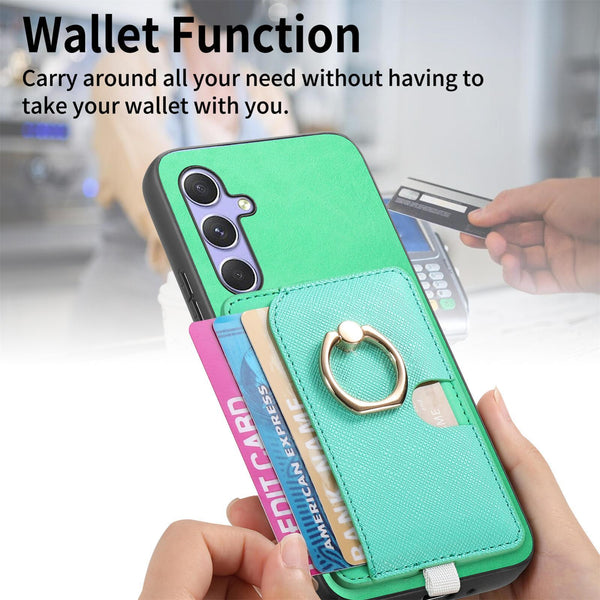 For Samsung Galaxy M14 5G Retro Cross Leather Ring Side Insert Card Bag MagSafe Phone Case(Green)