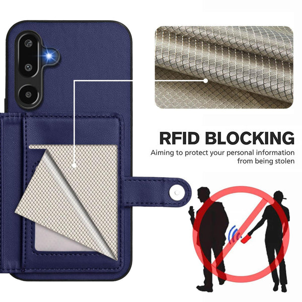 For Samsung Galaxy M16 5G / F16 5G Button Card Bag RFID Anti-theft Phone Case(Blue)