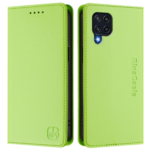 For Samsung Galaxy M32 4G Global / M22 RC01 Dual-Folded Magnetic Suction RFID Leather Phone Case(Grass Green)