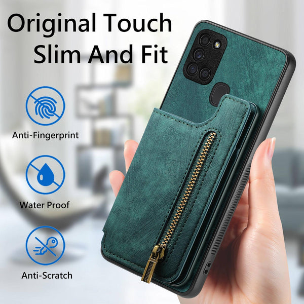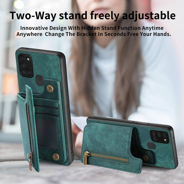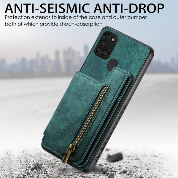 For Samsung Galaxy M32 4G Retro Leather Zipper Wallet Back Phone Case(Green)